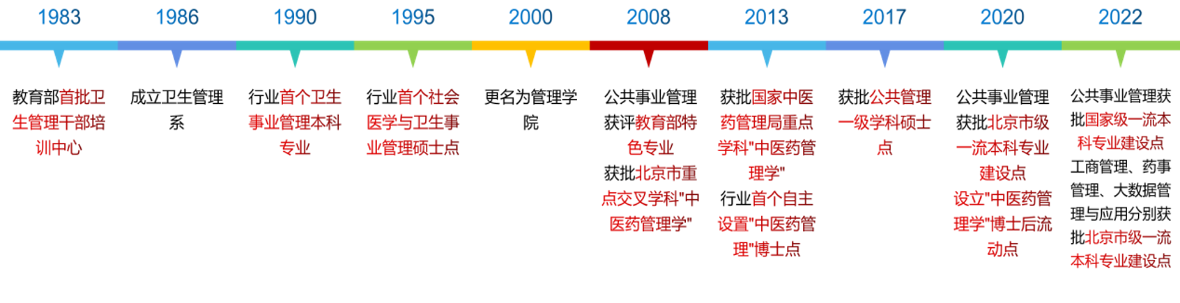 为适应行业发展对人才的需求,2015年开始招收信息管理与信息系统专业本科生。2017年开始招收药事管理专业本科生。2017年获批“公共管理”一级学科硕士点。 2019年开始招收行业内首个大数据管理与应用本科专业。公共事业管理2020年获批北京市本科一流专业,2022年获批国家级一流本科专业建设点。
