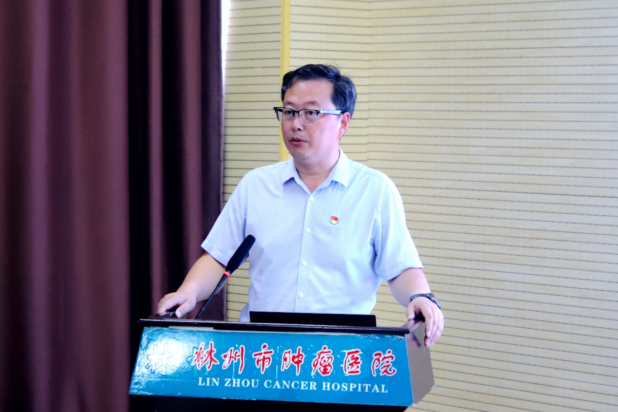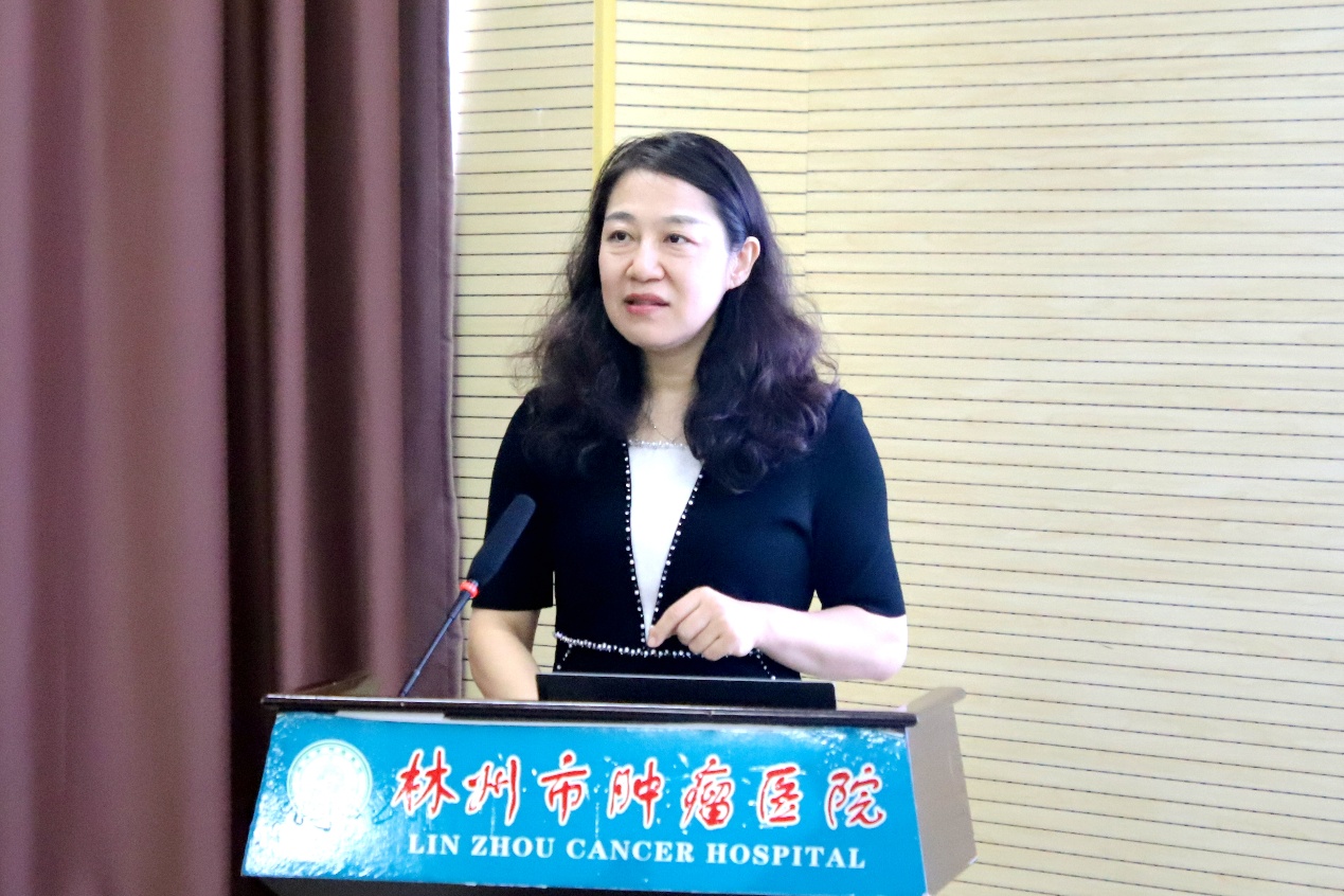 林州市肿瘤医院党支部书记、院长秦富强系统介绍了该院在中西医结合肿瘤防治方面的探索历程和近期成效,重点介绍了中医药融入肿瘤预防、治疗、康复全流程的优势、价值以及面临的挑战和困难,并提出希望加强合作,将中医药更好的融入肿瘤防治工作,加强中西医结合防治模式和体系建设。