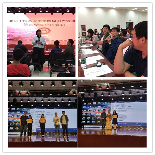 2019年5月8日星期三晚,管理学院“第四届阳光宣讲团”院内宣讲选拔活动在良乡校区举行。本次宣讲活动以“自立自强,全面成才”为主题,共有7位选手参加宣讲选拔。管理学院副书记赵静、校团委副书记、中医学院专职辅导员高鹏、中药学院专职辅导员王硕、生命科学学院专职辅导员王利、管理学院周磊、王鸿蕴老师等老师,出席本次活动并担任评委。管理学院17级和18级的全体学生到场观摩。