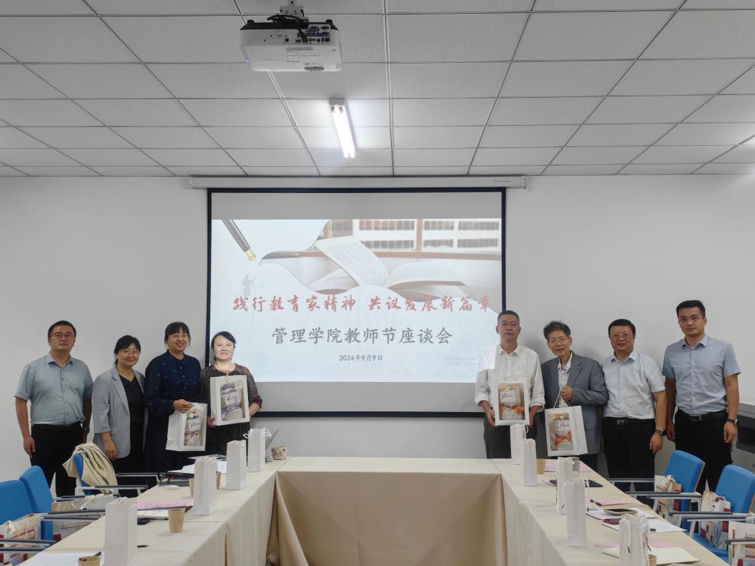 在第40个教师节来临之际,为弘扬教育家精神,共谋发展新篇章,管理学院于9月9日召开教师代表座谈会,荣休教师代表、学院领导、教研室主任、教师代表和行政人员代表参加座谈会。会议由王慧副院长主持。