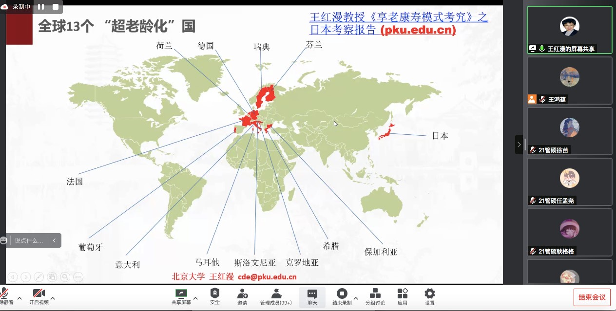2022年5月18日管理学院博约讲坛邀请到北京大学王红漫教授进行主题为“积极推进人口老龄化国家战略下医养康养结合与老年健康发展”的报告,本次报告以腾讯会议形式线上举办。讲坛由管理学院李瑞锋院长主持,共130多名老师和同学参加。北京中医药大学党委副书记、纪委书记蒋朗朗出席本次讲坛。