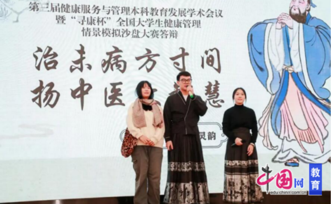 本次比赛由中国老年医学学会指导、中国老年医学学会院校教育分会主办,旨在推进健康服务与管理专业发展,加强全国健康服务与管理院校间的交流与合作。来自全国中医药院校、医学院校等多所高校派出代表队进行角逐。本次大赛分为三个阶段,包含健康管理方案策划,沙盘情景模拟对抗以及现场方案展示与讲解。参赛选手结合社区案例中人群的主要健康问题进行专业知识技能和团队协作能力的综合比拼。在管理学院教师朱燕波与曾奕萌的带领下,我院学生在比赛中充分运用基于中医药特色的健康管理模式,在方案策划、沙盘对抗与现场方案展示各个阶段均表现出扎实的基础知识与良好的团队配合,展现了优秀的北中医人风貌,最终获得赛事评委的一致认可,夺得本次大赛特等奖。代表队风采也被赛事官方报道在中国网。