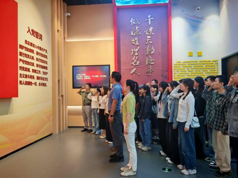 参观结束后,师生党员在党旗前进行宣誓,重温入党誓词,铿锵有力的声音在展馆内回荡,彰显着大家对党的忠诚以及为党和人民事业不懈奋斗的坚定决心。