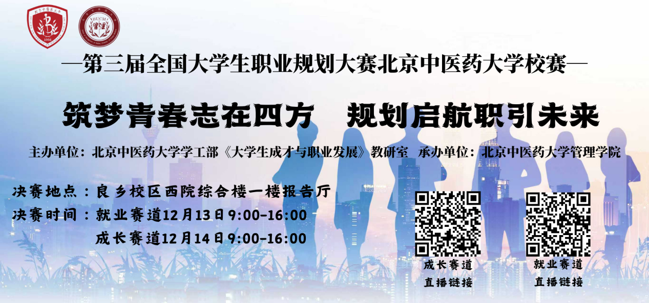 2025年12 月 13 — 14 日,第三届全国大学生职业规划大赛北京中医药大学校级决赛在良乡西院综合楼一层报告厅成功举办。本次大赛以 “筑梦青春志在四方,规划启航职引未来” 为主题,设立成长与就业双赛道,通过 “以赛促学、以赛促教、以赛促就” 三大路径,搭建起学子职业成长与校企协同育人的优质平台。