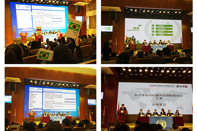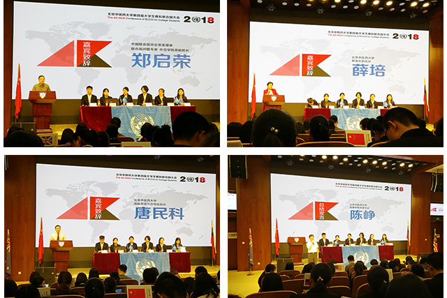 2018年5月19日下午,由教务处、团委、学工部主办,管理学院承办的学生竞赛月活动——第四届大学生模拟联合国大会在良乡校区报告厅拉开帷幕。中国联合国协会常务理事、联合国问题专家、外交学院原副院长郑启荣教授,国际交流与合作处处长唐民科,教务处副处长薛培,国际学院副院长丁胜云,管理学院党委书记陈峥,副院长李瑞锋,党委副书记赵静,团总支书记张瑶萱老师,学生办公室关健老师,教学办公室王鸿蕴老师、陈超老师出席本届大会。来自我校各学院及北京工商大学百余名学生组成的26个国家代表队齐聚于此,潇洒恣意、一展风采。