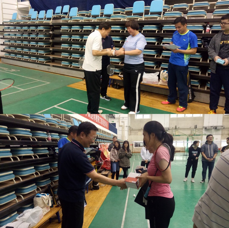 比赛共进行了三轮,第一轮初赛对阵的队伍通过抽签选择,采用21分制,一局定胜负;第二轮复赛在初赛优胜队伍中进行,采用31分制,一局定胜负;第三轮决赛采用21分制,三局两胜。在公平公正的原则下,我院教职工进行了比赛氛围和谐友好的技术切磋。最后,由管理学院赵静书记、李瑞锋院长为优胜队伍颁发了奖品,其他参与队伍也得到了纪念品。