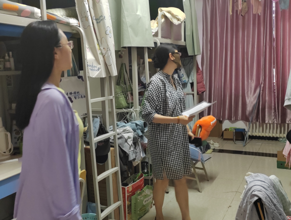 2025年7月11日下午,管理学院周磊副书记、辅导员张瑶萱老师、王妍老师和张毅超老师,在良乡校区看望了部分暑假留校学生,并对宿舍安全进行了检查。