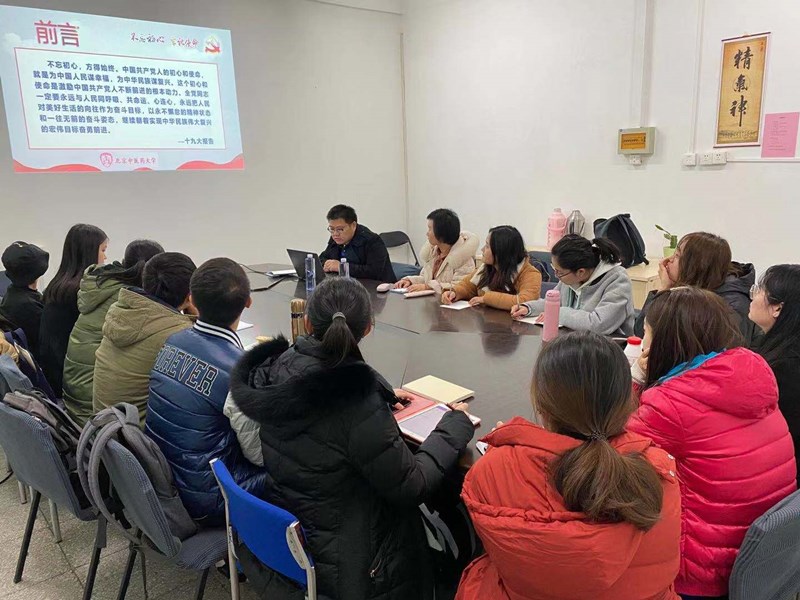 2019年11月21日星期四晚上6时30分,管理学院17级研究生党支部在和平街校区针灸学院楼110学术讨论室开展主题学习,并有幸邀请校党委统战部部长张小勇以“新时代中国共产党人的初心和使命”为题讲授专题党课。
