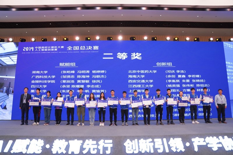 2019年11月23日,由教育部三大教指委、全国高等学校计算机教育研究会主办,百度公司、浙江大学、德清县人民政府联合承办的2019“中国高校计算机大赛-人工智能创意赛”总决赛圆满结束,来自全国37所高校的43支队伍一决高下。其中,由我校管理学院唐燕老师带领的队伍获得了创新组的二等奖。