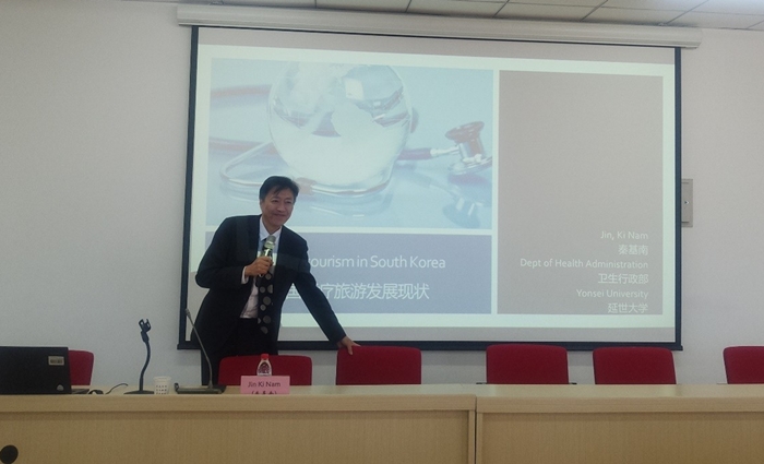 2019年12月19日,韩国延世大学秦基南教授,受我院侯胜田教授邀请来校,在管理学院良乡校区环形会议室,以“韩国医疗旅游发展现状”为主题进行讲座与交流。活动受到了本校师生的热烈欢迎。管理学院、国家中医药发展战略与研究院多位教师和本硕学生积极参与聆听和讨论。