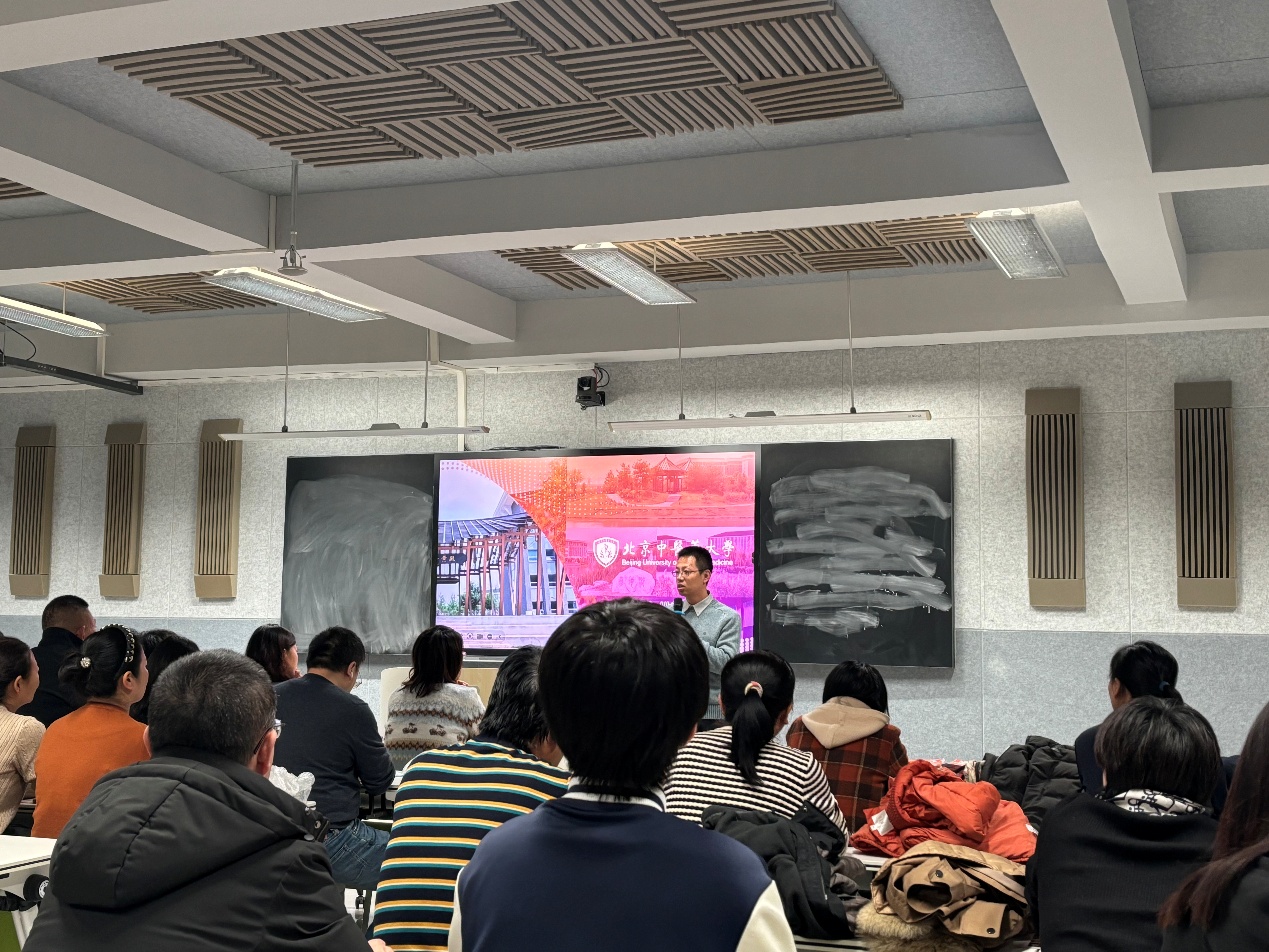 2025年11月21日下午5点,北京中医药大学国际合作处副处长、港澳台办公室副主任魏鹏和呼市二中2024届毕业生、岐黄学院领军班范若予代表内蒙古招生组走进呼和浩特市第二中学,以“北京中医药大学招生政策及中医药出海实践”为主题开展招生宣讲活动,近百名师生家长参与本次活动。